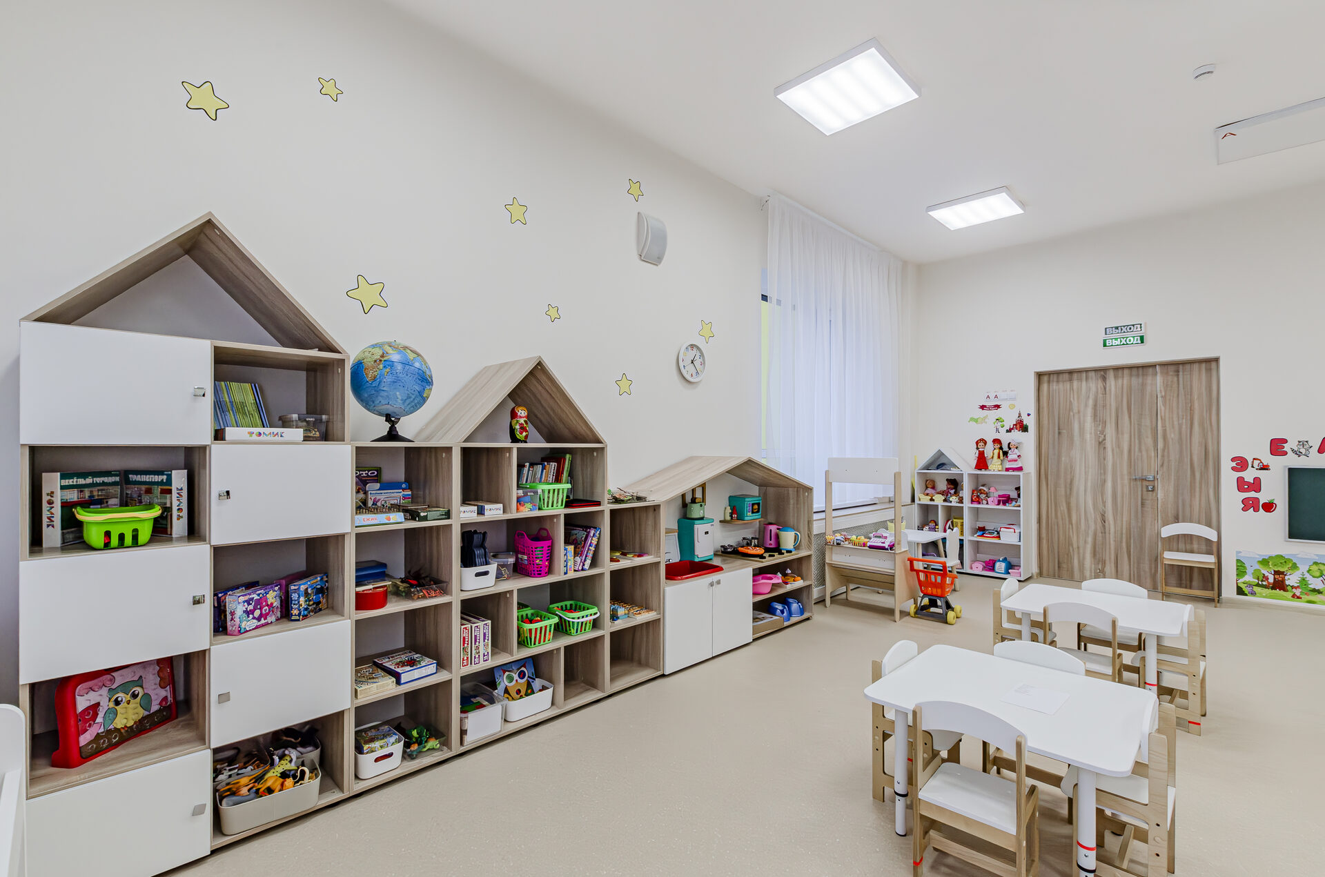 Комфорт и игра: мебель для сада в Зеленодольске Оснащение детского сада в Зеленодольске — мебель в детской игровой и общей зоне. В проекте: мебель из ЛДСП с яркими фасадами, игровые модули, шкафчики и стулья, безопасные материалы, класс эмиссии Е0.5.